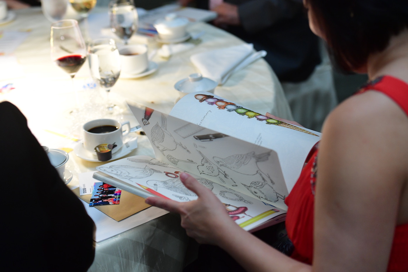 Huetopia is a colouring book filled with hand-drawn and whimsical illustrations by Caroline Lim. The book was launched in PSA Media Party 2016, an annual media engagement banquet. Huetopia, which connotes an utopia for colours, was set as the theme for the party.