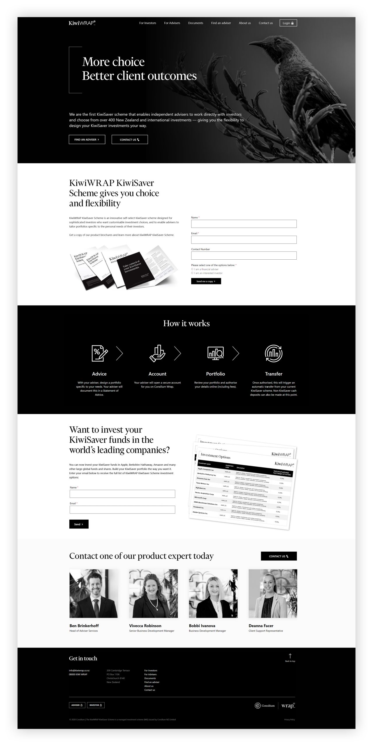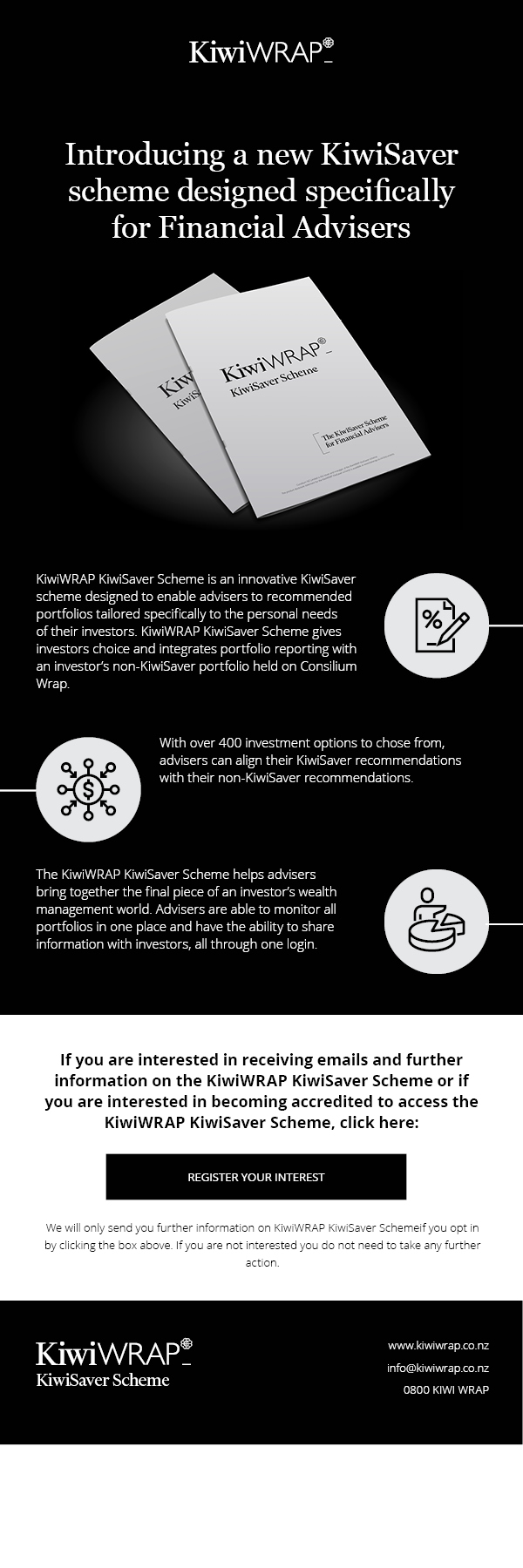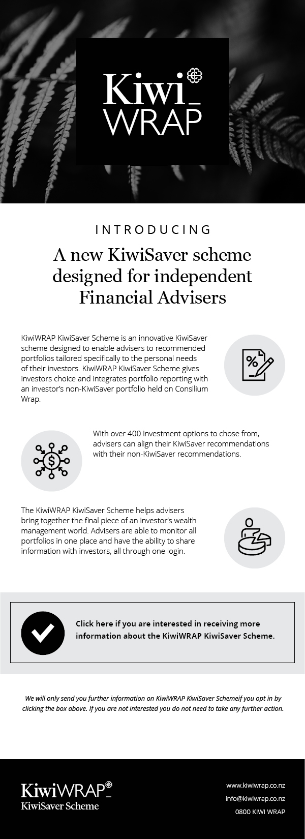 KiwiWRAP KiwiSaver Scheme is an innovative self-select KiwiSaver scheme designed for sophisticated investors who want customisable investment choices, and to enable advisers to tailor portfolios specific to the personal needs of their investors.